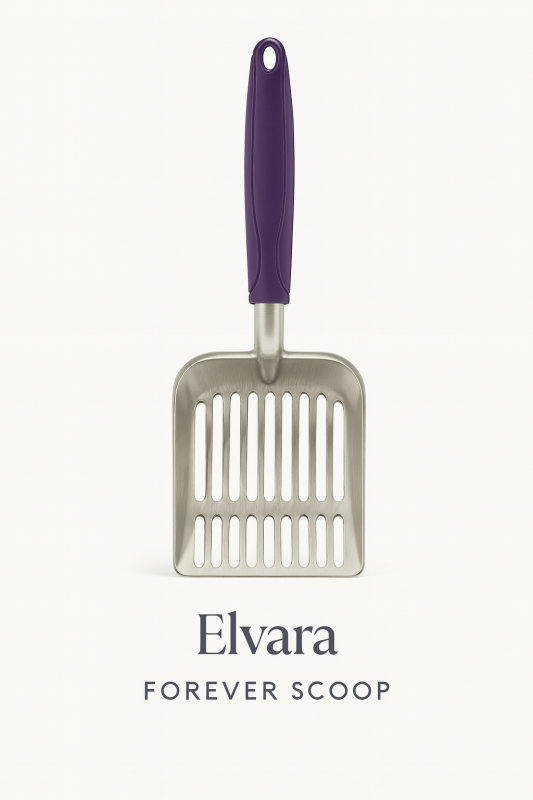 The Elvara Forever Scoop™ is built for cat owners who demand both durability and design. Crafted from premium stainless steel with a sleek brushed finish, it resists stains, odors, and wear far better than plastic ever could. Its ergonomic handle — finished in Elvara’s signature spa-inspired palette — makes scooping effortless and elegant.